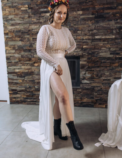 Svatební šaty, které tvoříme, jsou odrazem nejen Vašeho vkusu, ale také vašeho příběhu. Ať už sníte o klasickýc princeznovských šatech, elegantní krajce nebo moderním minimalistickém designu, rádi Vám pomůžeme Vaše představy proměnit ve skutečnost. Každý detail, od výběru látky až po poslední korálek, je pečlivě promyšlen a přizpůsoben Vašim přáním.